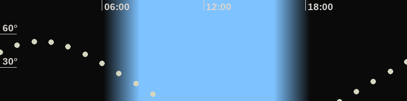 Höchster Stand (Kulmination)02:23 Uhr (h=53.4°)