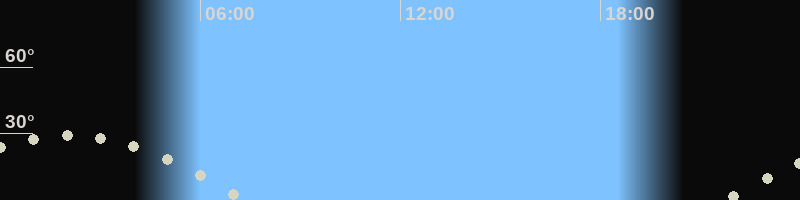 Höchster Stand (Kulmination)02:04 Uhr (h=29.2°)