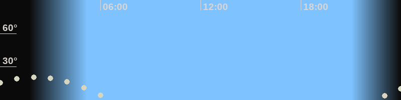 Monduntergang06:36 Uhr im Südwesten (αAz = 240.6°)