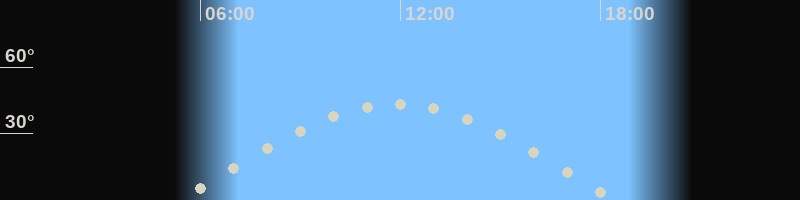 Höchster Stand (Kulmination)11:54 Uhr (h=43.6°)