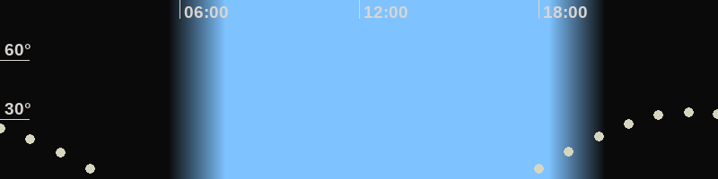 Höchster Stand (Kulmination)22:59 Uhr (h=33.6°)
