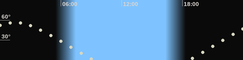 Höchster Stand (Kulmination)01:23 Uhr (h=56.3°)
