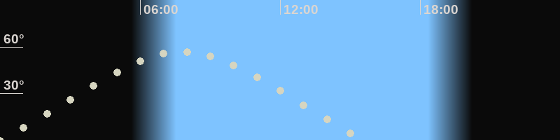 Höchster Stand (Kulmination)07:46 Uhr (h=57.1°)