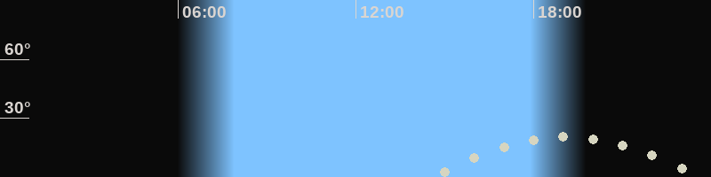 Monduntergang23:34 Uhr im Südwesten (αAz = 240.7°)