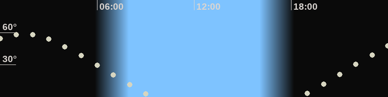 Höchster Stand (Kulmination)01:24 Uhr (h=58.6°)