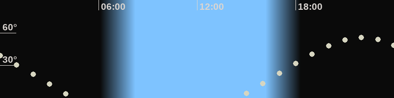 Höchster Stand (Kulmination)21:59 Uhr (h=55.6°)