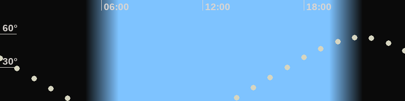 Mondaufgang13:25 Uhr im Nordosten (αAz = 59.6°)