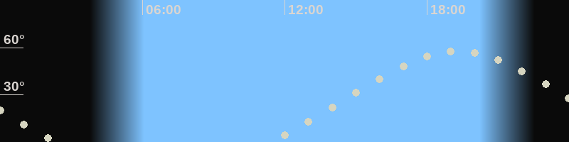 Mondaufgang11:16 Uhr im Nordosten (αAz = 58.4°)