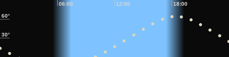 Höchster Stand (Kulmination)18:21 Uhr (h=64.3°)
