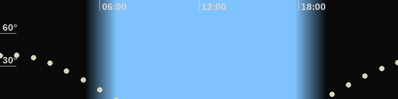 Höchster Stand (Kulmination)00:41 Uhr (h=40.4°)
