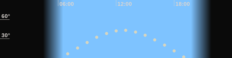 Höchster Stand (Kulmination)12:45 Uhr (h=43.4°)