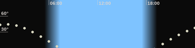Höchster Stand (Kulmination)00:44 Uhr (h=44.9°)