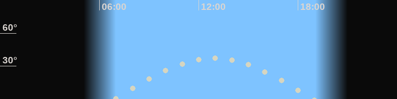 Höchster Stand (Kulmination)12:55 Uhr (h=37.7°)