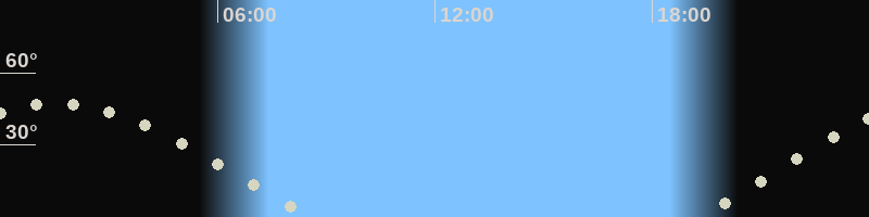 Höchster Stand (Kulmination)01:24 Uhr (h=46.9°)