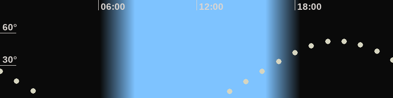 Mondaufgang13:12 Uhr im Osten (αAz = 69.9°)