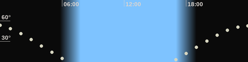 Höchster Stand (Kulmination)23:56 Uhr (h=52.8°)