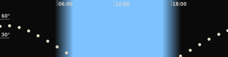 Höchster Stand (Kulmination)00:43 Uhr (h=49.5°)
