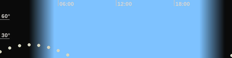 Monduntergang07:38 Uhr im Südwesten (αAz = 240.8°)
