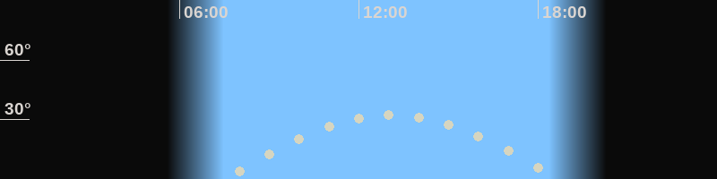 Höchster Stand (Kulmination)13:06 Uhr (h=32.6°)
