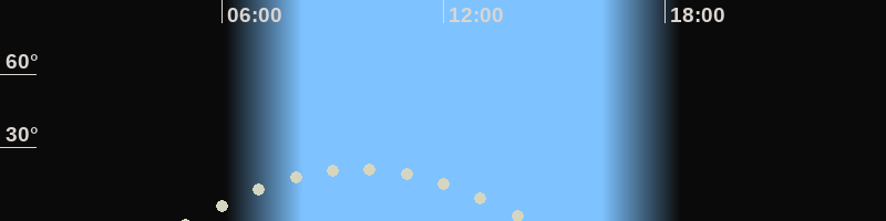 Höchster Stand (Kulmination)09:43 Uhr (h=21.5°)