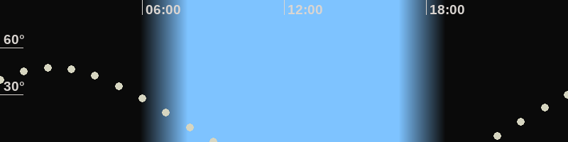 Höchster Stand (Kulmination)02:14 Uhr (h=47.5°)