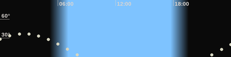 Höchster Stand (Kulmination)02:28 Uhr (h=36.9°)