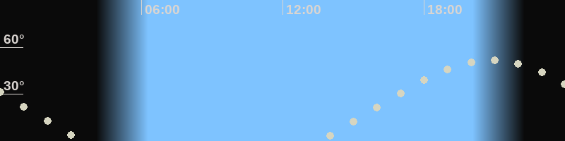 Monduntergang03:28 Uhr im Nordwesten (αAz = 294.2°)