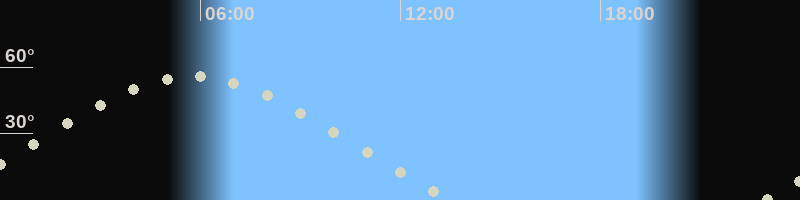 Höchster Stand (Kulmination)05:41 Uhr (h=55.6°)