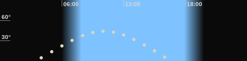 Höchster Stand (Kulmination)10:04 Uhr (h=44.6°)