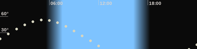 Höchster Stand (Kulmination)05:18 Uhr (h=53.6°)