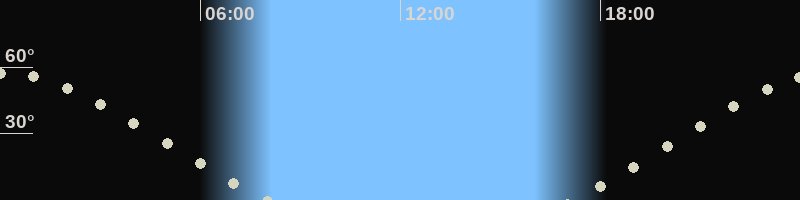 Höchster Stand (Kulmination)00:01 Uhr, (h=57.3°)