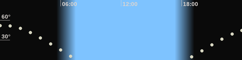 Höchster Stand (Kulmination)00:24 Uhr (h=52°)
