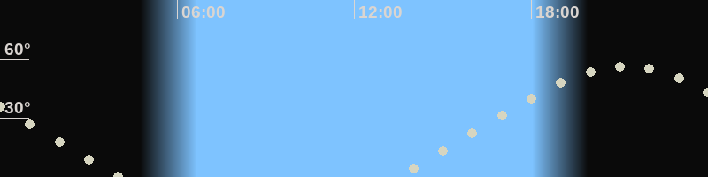 Mondaufgang13:19 Uhr im Nordosten (αAz = 60.7°)