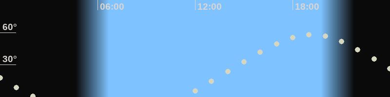 Höchster Stand (Kulmination)19:05 Uhr (h=58.2°)