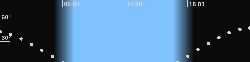 Höchster Stand (Kulmination)23:56 Uhr (h=49.1°)