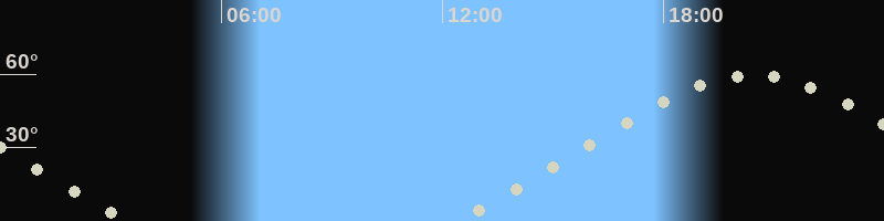 Höchster Stand (Kulmination)20:25 Uhr (h=59.4°)