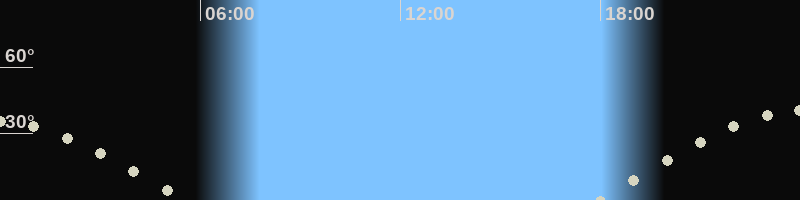 Monduntergang05:26 Uhr im Westen (αAz = 266.7°)
