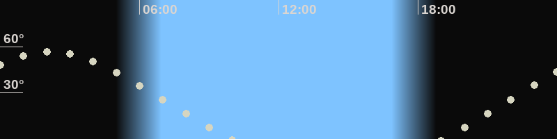 Höchster Stand (Kulmination)02:06 Uhr (h=56.5°)