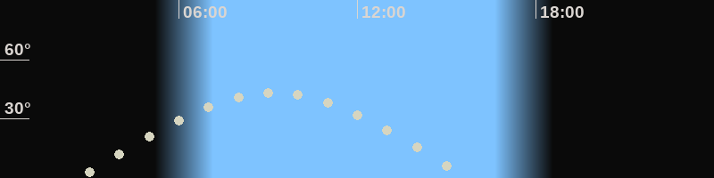 Höchster Stand (Kulmination)09:15 Uhr (h=43.5°)