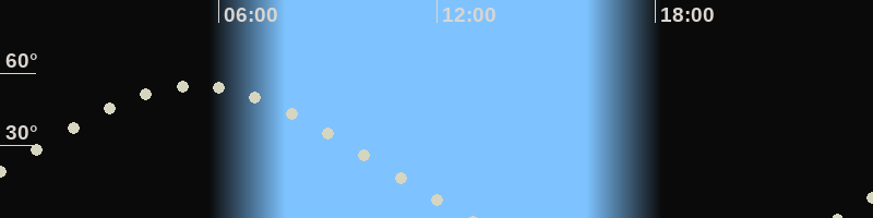 Höchster Stand (Kulmination)05:23 Uhr (h=55.1°)
