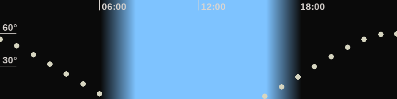 Höchster Stand (Kulmination)23:35 Uhr (h=59.7°)