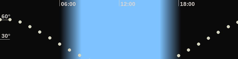 Höchster Stand (Kulmination)00:28 Uhr (h=60.9°)