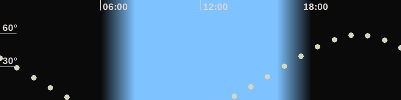 Höchster Stand (Kulmination)21:23 Uhr (h=58.7°)