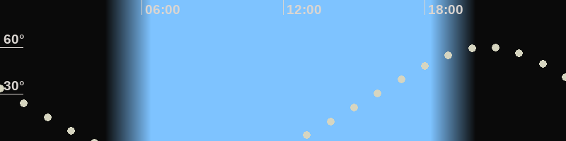 Höchster Stand (Kulmination)20:34 Uhr (h=60.3°)