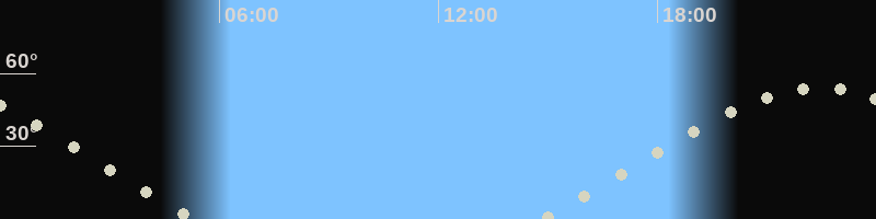 Monduntergang05:19 Uhr im Nordwesten (αAz = 298.8°)