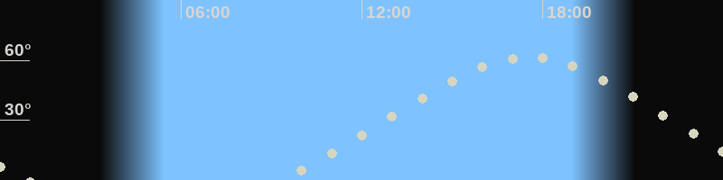 Höchster Stand (Kulmination)17:30 Uhr (h=61.5°)