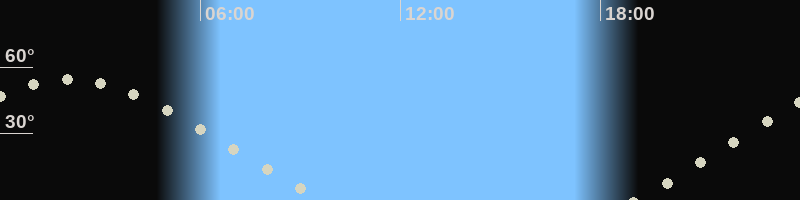 Höchster Stand (Kulmination)02:00 Uhr (h=54.4°)