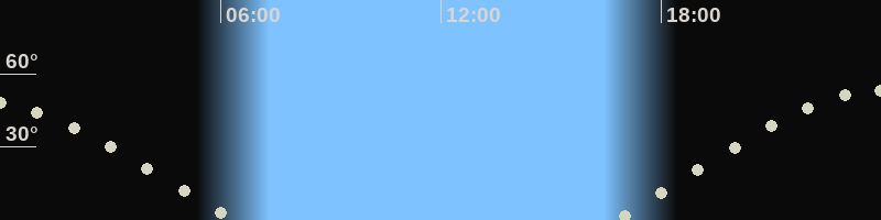 Höchster Stand (Kulmination)23:58 Uhr (h=53.1°)