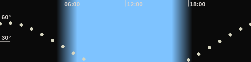 Höchster Stand (Kulmination)00:40 Uhr (h=57°)