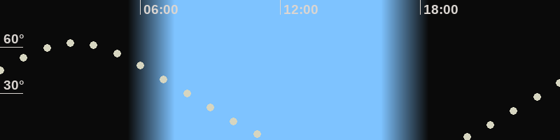 Höchster Stand (Kulmination)03:09 Uhr (h=62.7°)